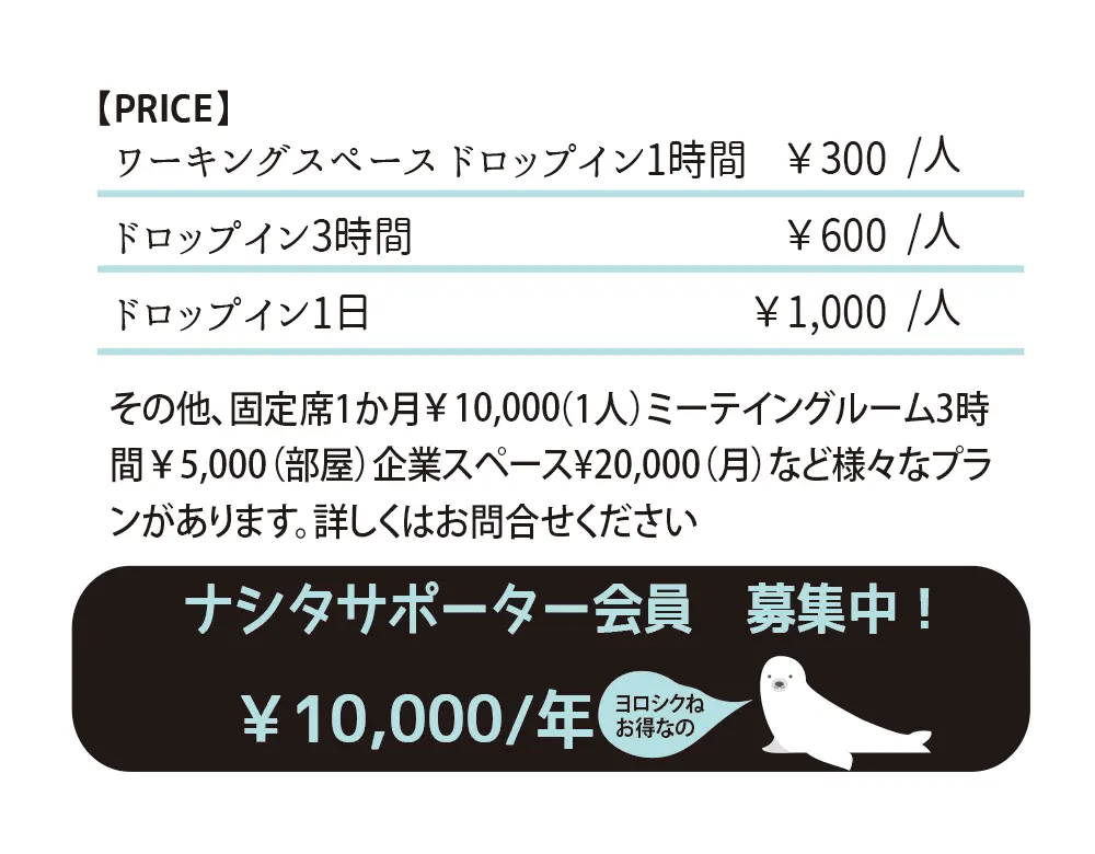 網走4条通り商店街にあるコワーキングスペース ナシタは